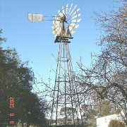 The original Climax windpump was manufactured by Thomas and Son of Worcester in England. After the second world war Stewards and Lloyds were allowed to, under lisence, manufacture the Climax at their Tosa works in Vereeniging. The first were manufactured in 1942 but after some modifications the 1944 model were made. Further modifications were made to the windvane to improve efficiency and the 1957 model saw the light. This model has S & L on the one side of the vane and Climax with the C partly encircling the rest of the name.. The lettering on the windvane changed again in 1969 with S&L within a white disk on the one side and Steward and Lloyds on the other.